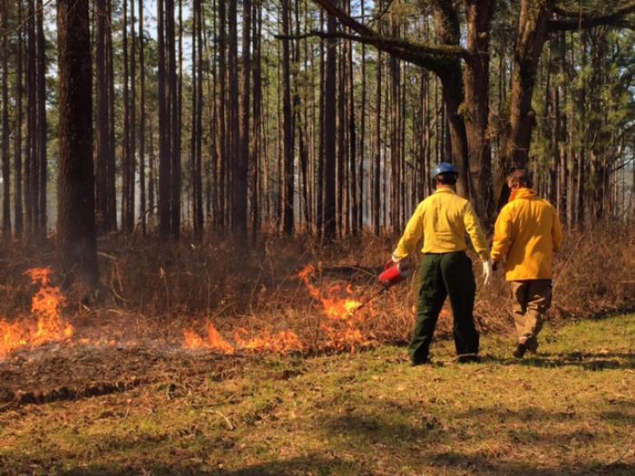 In this February 2016 photograph, taken at the Joseph W. Jones Ecological Research Center, at Ichauway, in Newton, GA, Ambarish Vaidyanathan of the Division of Environmental Hazards and Health Effects (EHHE), Environmental Health Tracking Branch, gets first-hand training from a Jones Center fire boss, in how to properly set up a prescribed burn. Through the use of prescribed, or planned burns, the Forest Service and private landowners, are able to prevent large, unplanned fires, and thus control negative effects on air quality, and water quality, as well as the need for emergency response. NCEH EHHE has worked with state health departments, EPA, the US Forest Service and others, over the last 20-years, to provide assistance in assessing health impacts from wildfires, and has participated in the development of a number of resource documents for public health officials, and health researchers, on public health response to wildfire events.