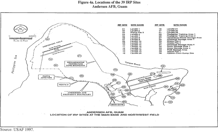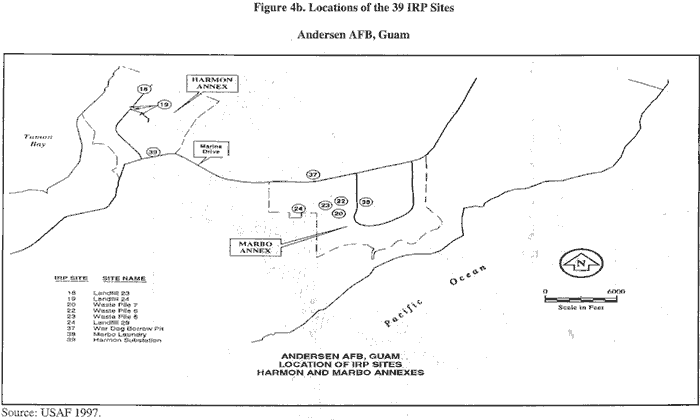 Figure 4b. Locations of the 39 IRP Sites Andersen AFB, Guam