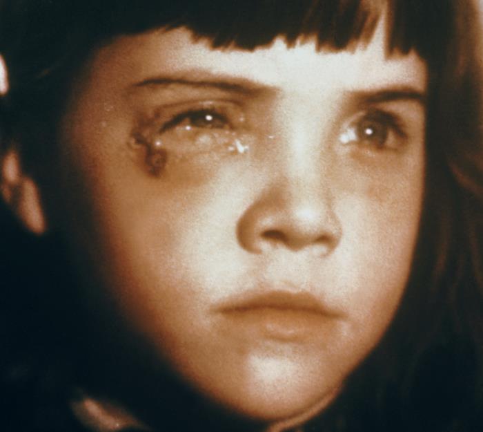 Photographed in 1969, this image depicts a child who had periorbital swelling, accompanied by what are referred to as, kissing lesions, on her lower and upper right eyelids, after having received a smallpox vaccination, and accidently touching her right eye, after touching the vaccination site. At this point in her treatment, she’d received vaccinia immune globulin (VIG), 36 hours prior to this photograph. See PHIL 3293, for a view of this girl’s condition, prior to beginning her treatment.